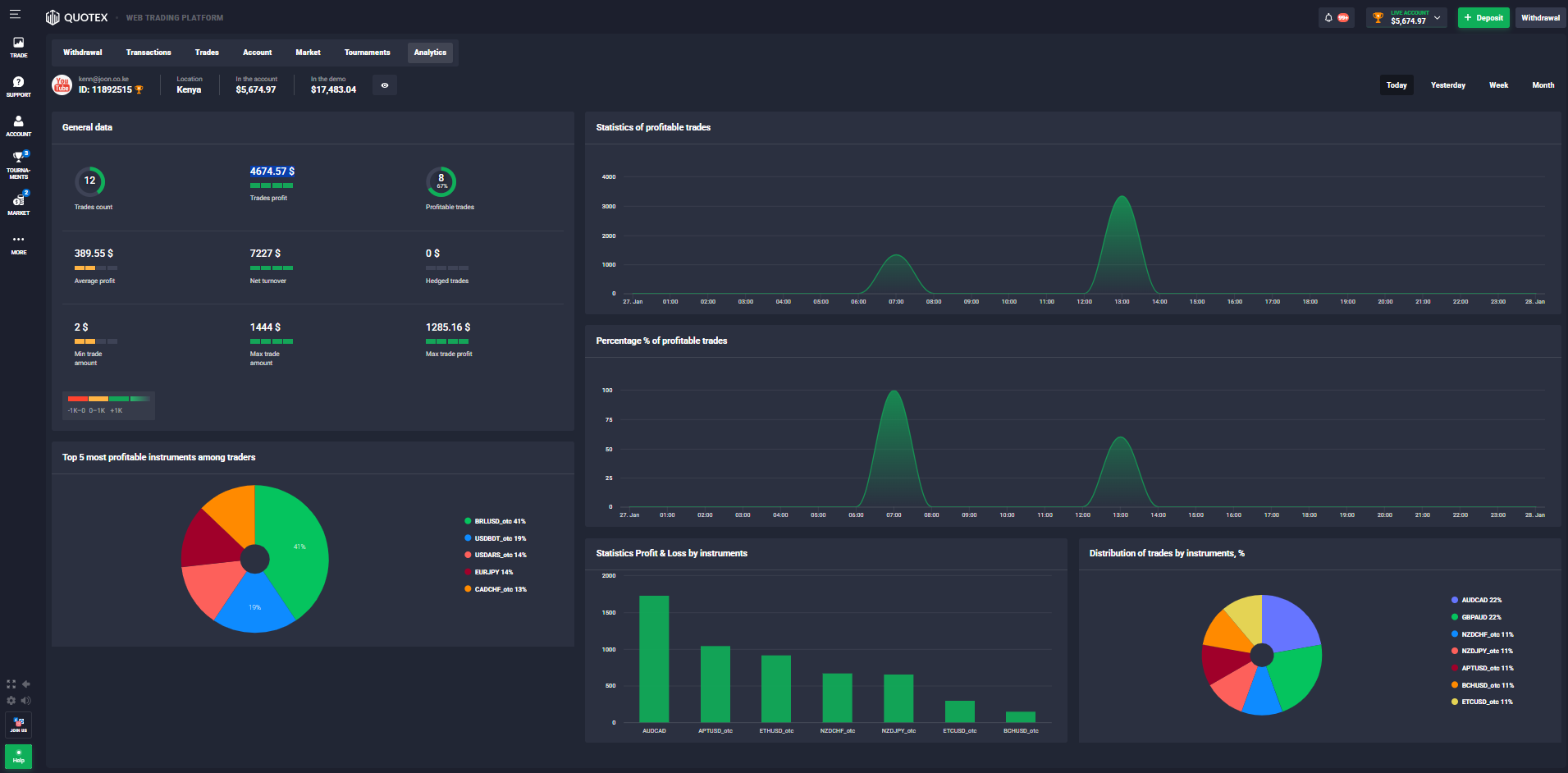 Prior to writing this post I tested the bot for Quotex signals with a $1,000 account and in under 2 hours my account had grown to $5,674.97 earning me $4,674.57 in profits